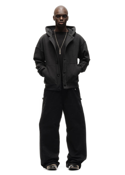 COMING SOONBUTTON KNIT COTTON JACKET BLACK