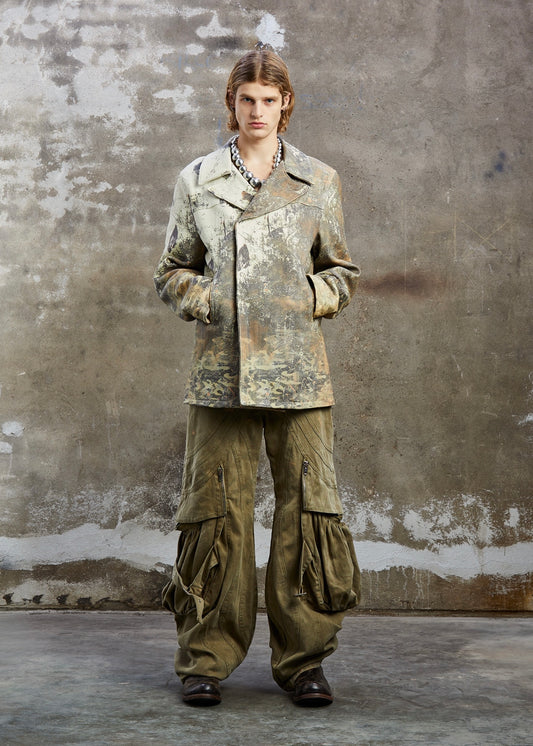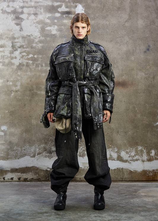 CAMOUFLAGE LEATHER SLATE COLLAR JACKET