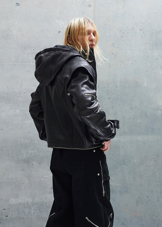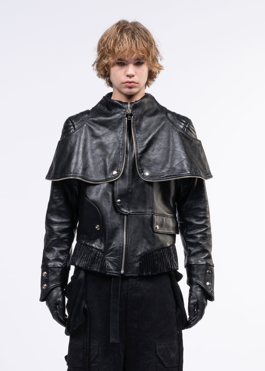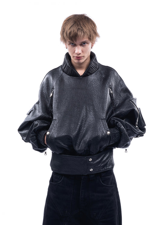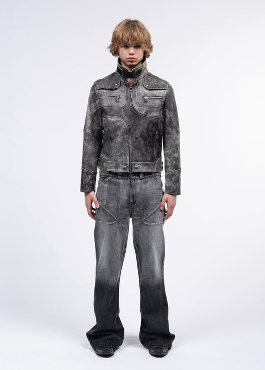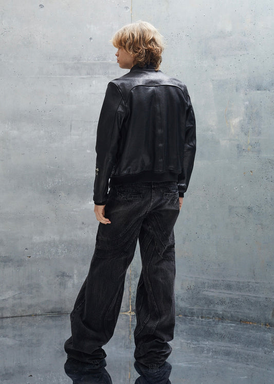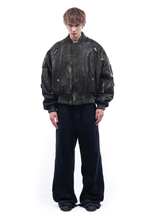 BLACK DRIED CONCRETE LEATHER BOMBER