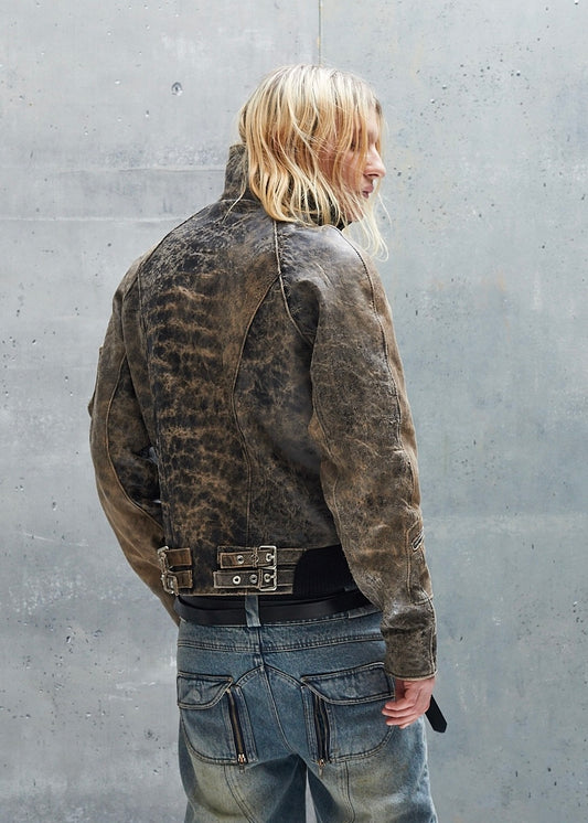 SNAKE COLLAR ZIP LEATHER JACKET UNISEX