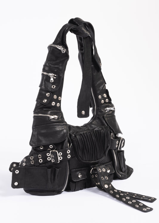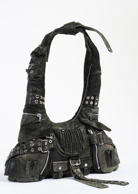 MULTIPOCKET BAG CRACKED SHINY LEATHER 005