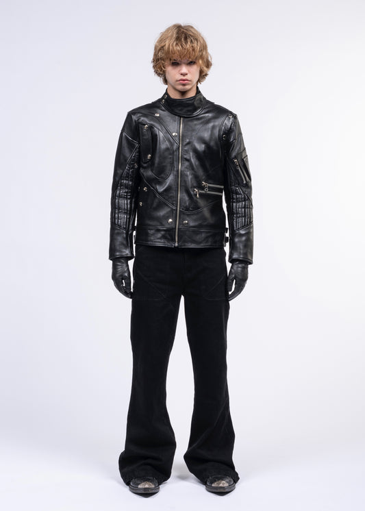 SNAKE ZIP LEATHER JACKET BLACK UNISEX