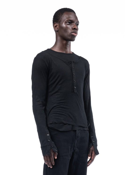 DOUBLE-LAYERED BUTTON ORGANIC COTTON SHIRT BLACK