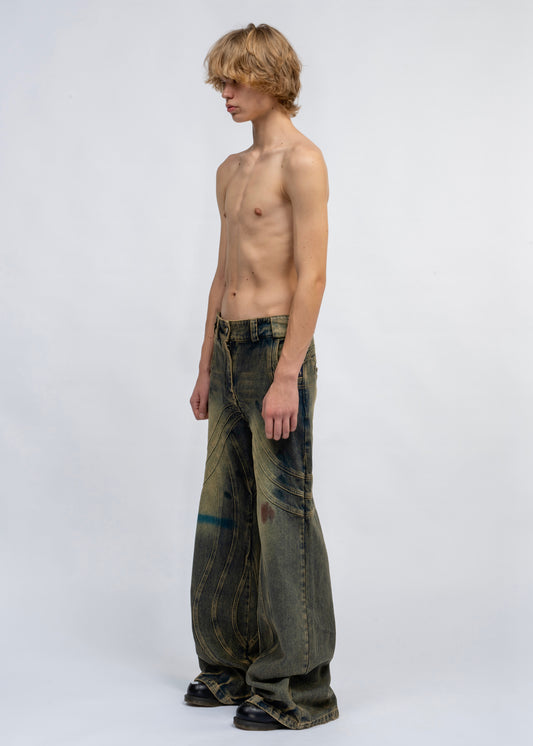 SOLD OUTLOW WAISTED DENIM SUN FADED GREEN