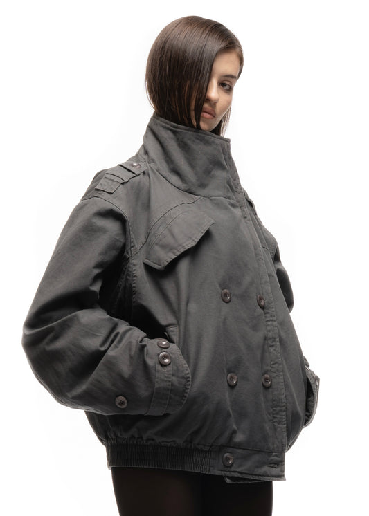 JAPANESE FLIGHT PADDED BOMBER JACKET STRUCTURED GREY FEMALE