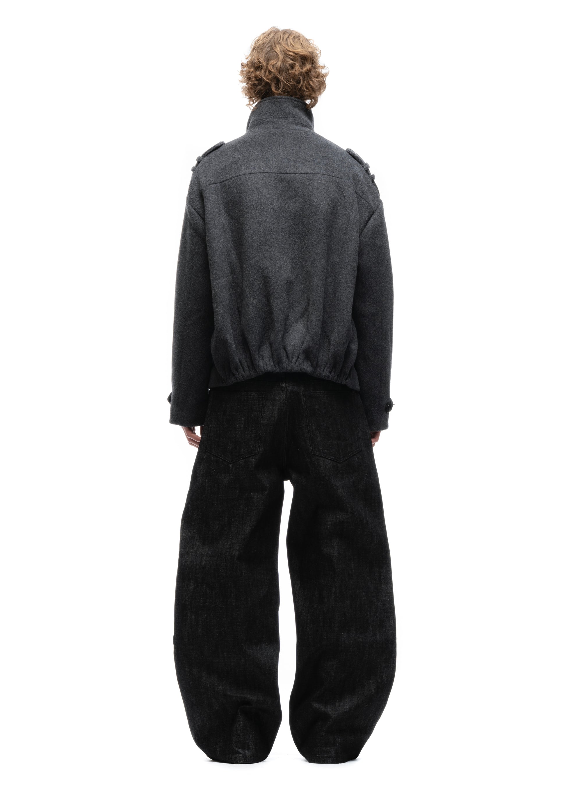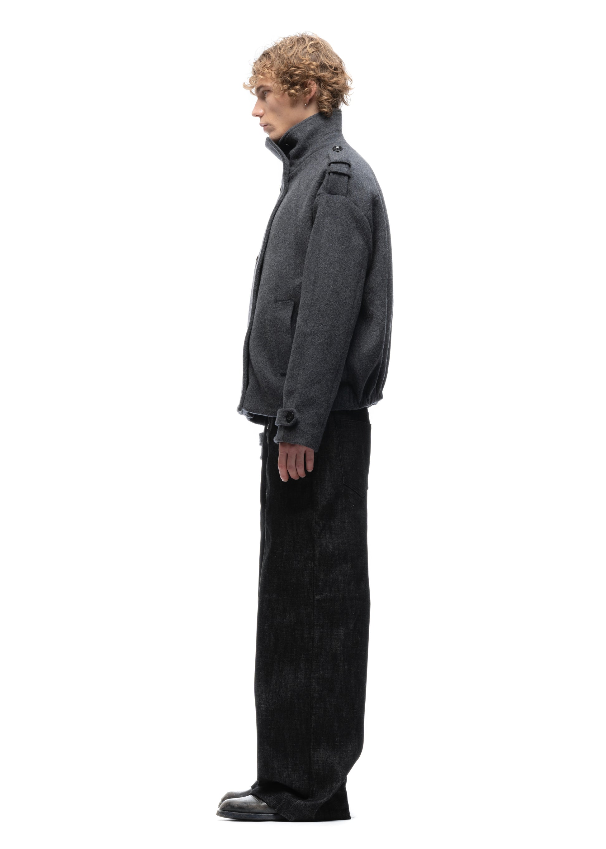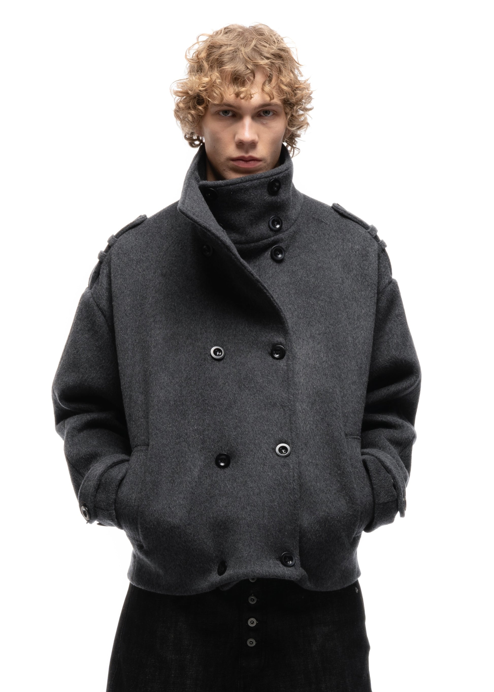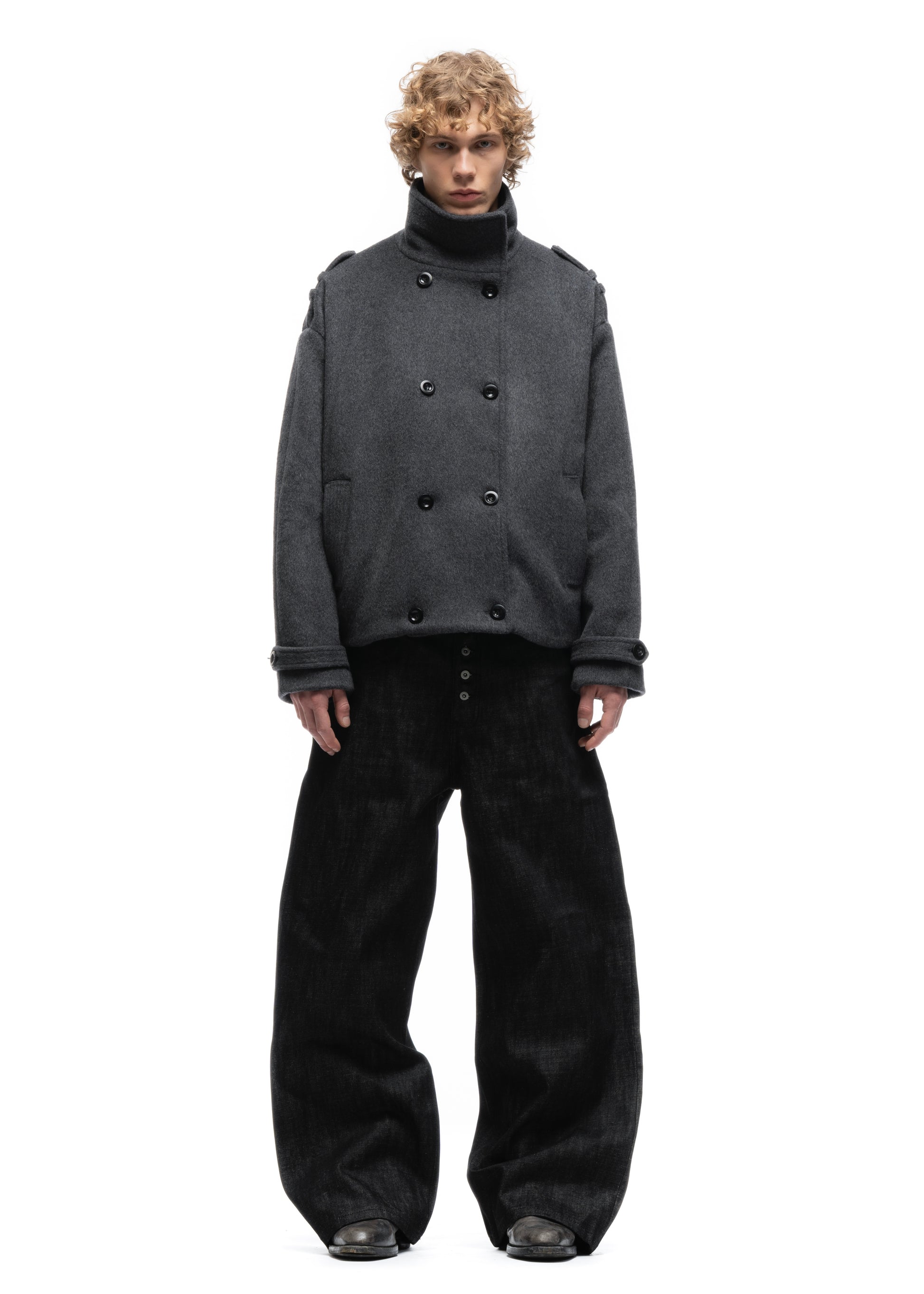 THE BUTTON UP MARINE JACKET FEATURES A CLEAN, STRUCTURED FIT WITH A DOUBLE ROW OF BUTTONS LEADING UP TO A HIGH STAND COLLAR. SHOULDER FLAPS AND ADJUSTABLE CUFF STRAPS ADD SUBTLE DETAILING, WHILE THE RELAXED PROPORTIONS KEEP THE JACKET STRAIGHTFORWARD AND EASY TO WEAR.