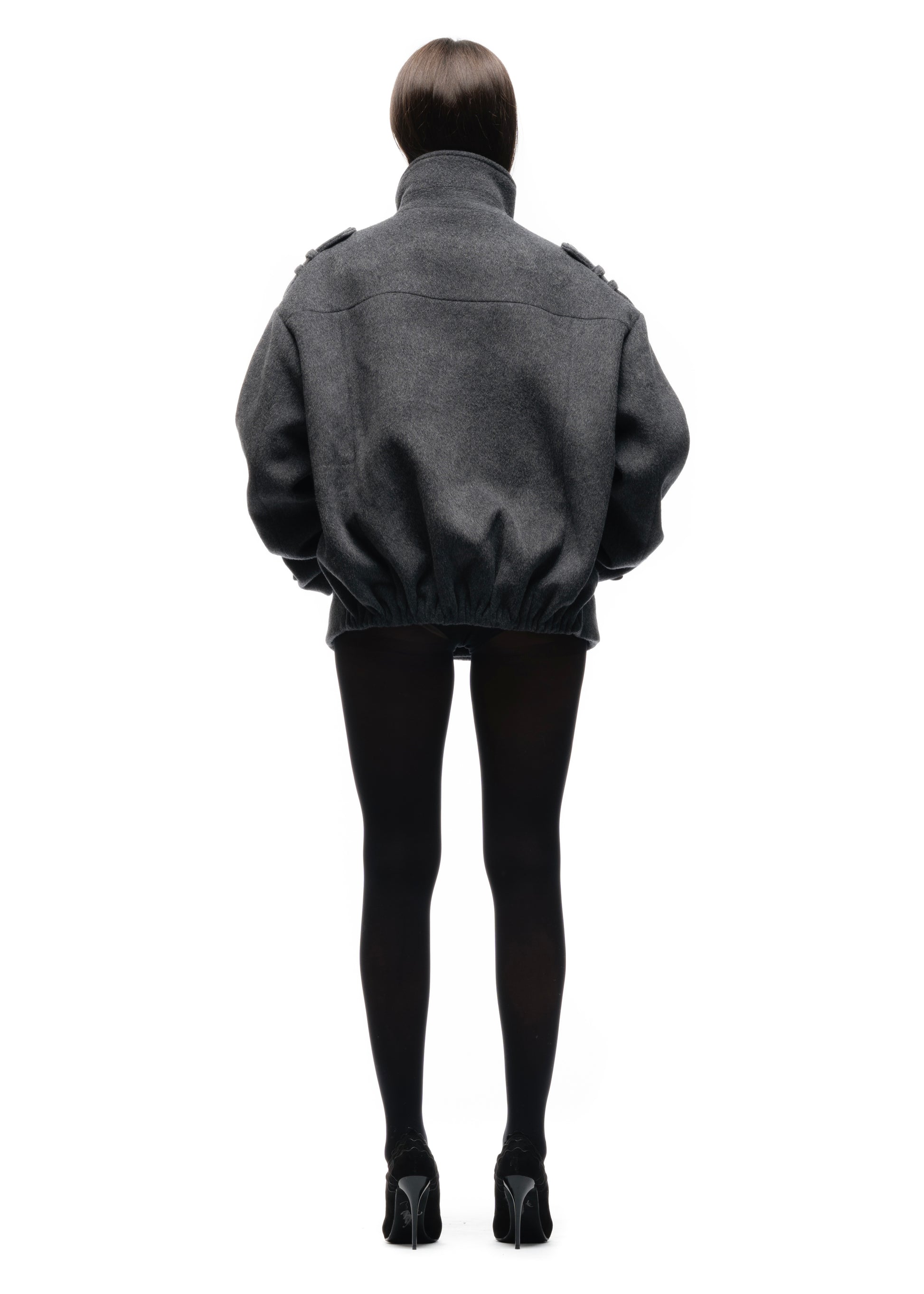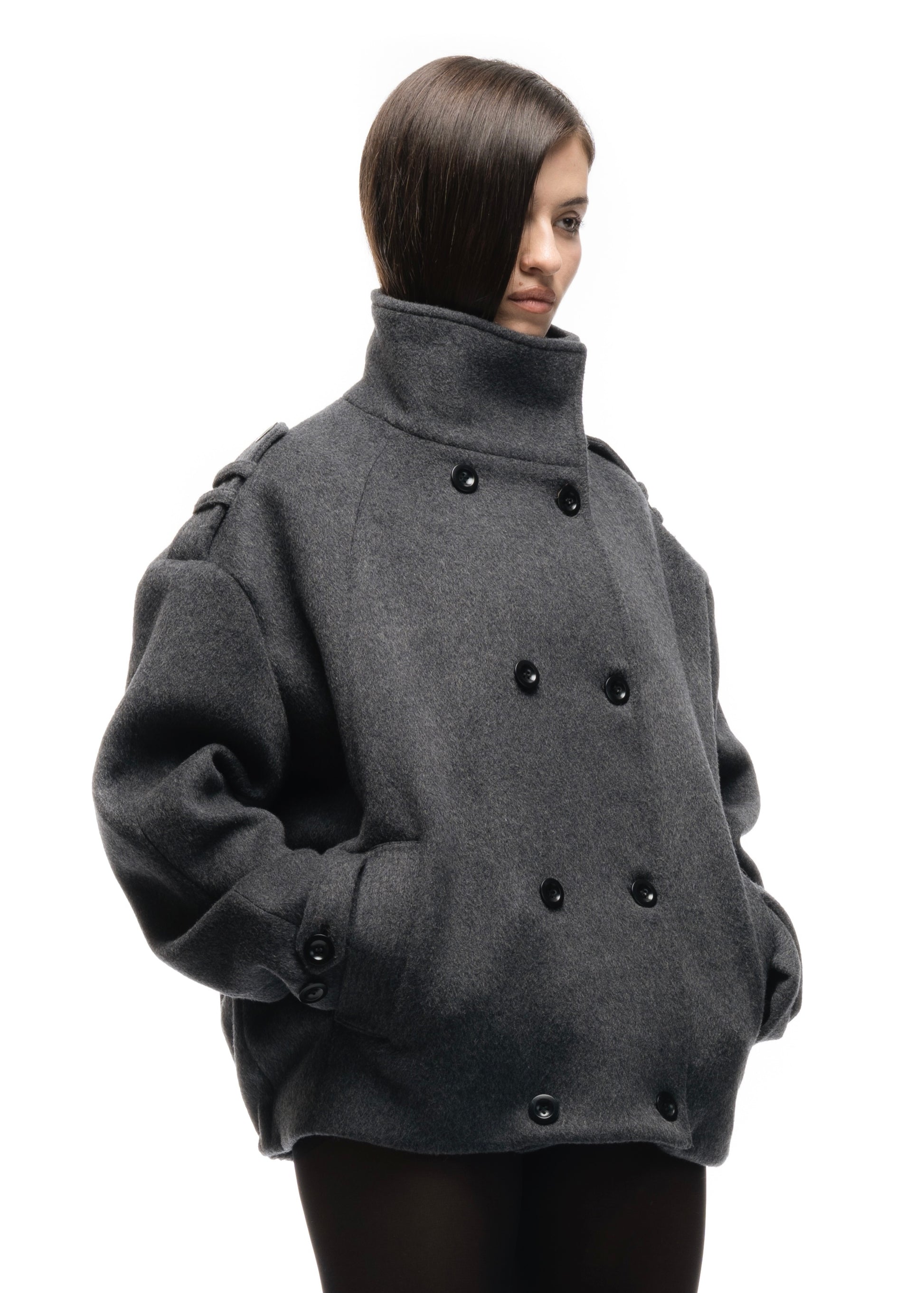 THE BUTTON UP MARINE JACKET FEATURES A CLEAN, STRUCTURED FIT WITH A DOUBLE ROW OF BUTTONS LEADING UP TO A HIGH STAND COLLAR. SHOULDER FLAPS AND ADJUSTABLE CUFF STRAPS ADD SUBTLE DETAILING, WHILE THE RELAXED PROPORTIONS KEEP THE JACKET STRAIGHTFORWARD AND EASY TO WEAR.