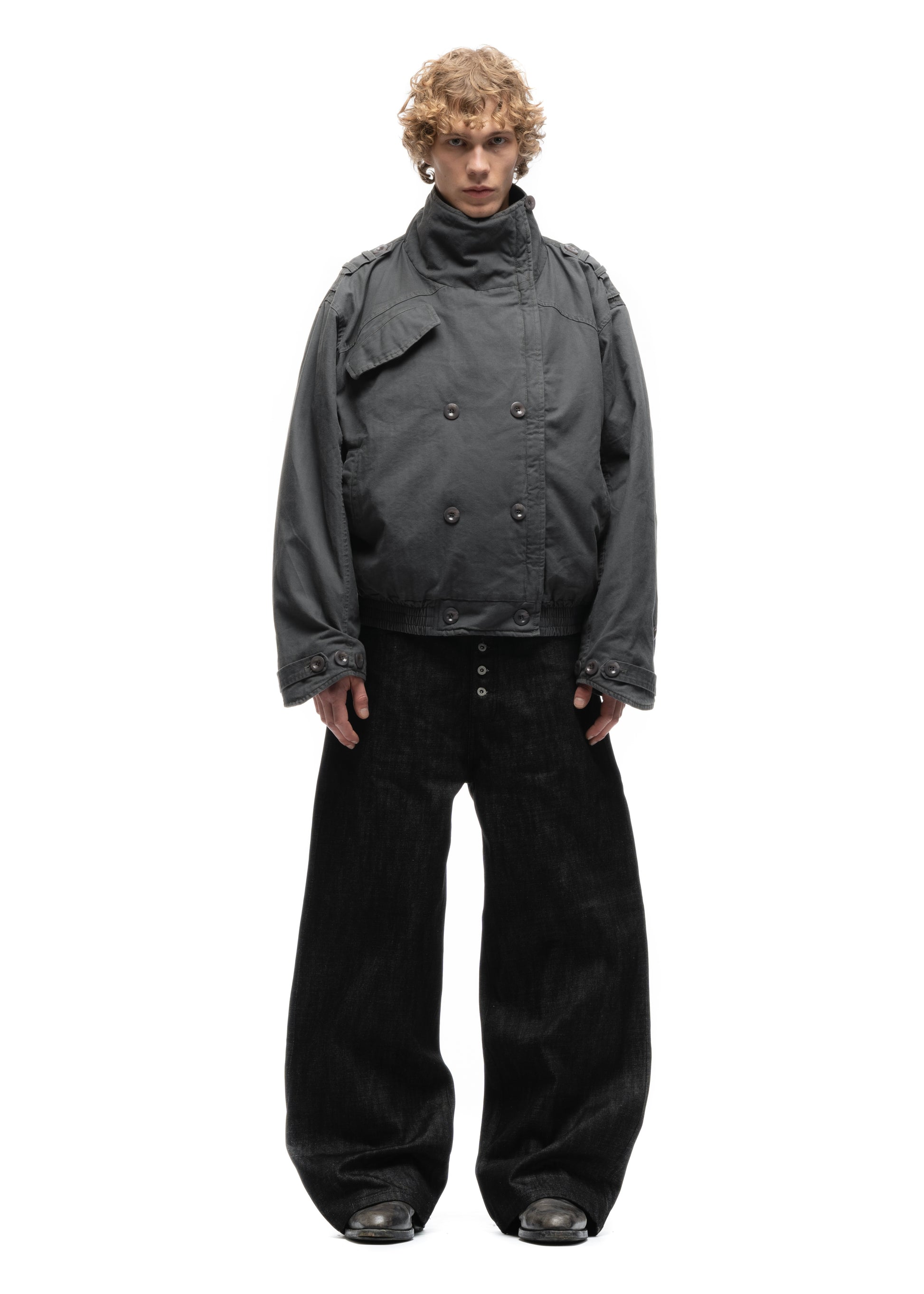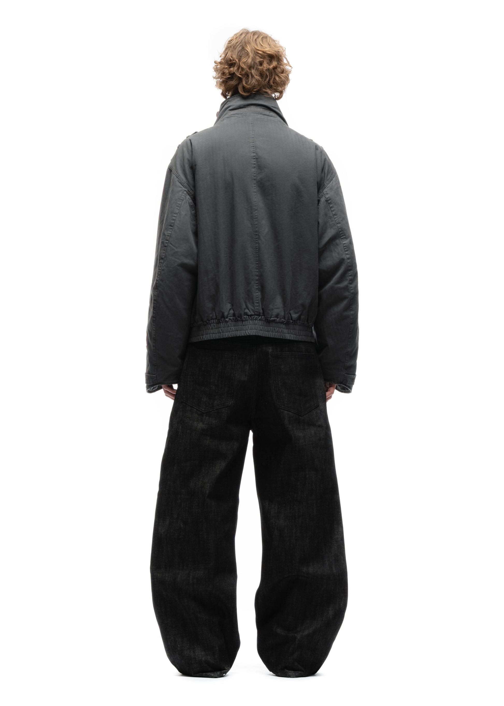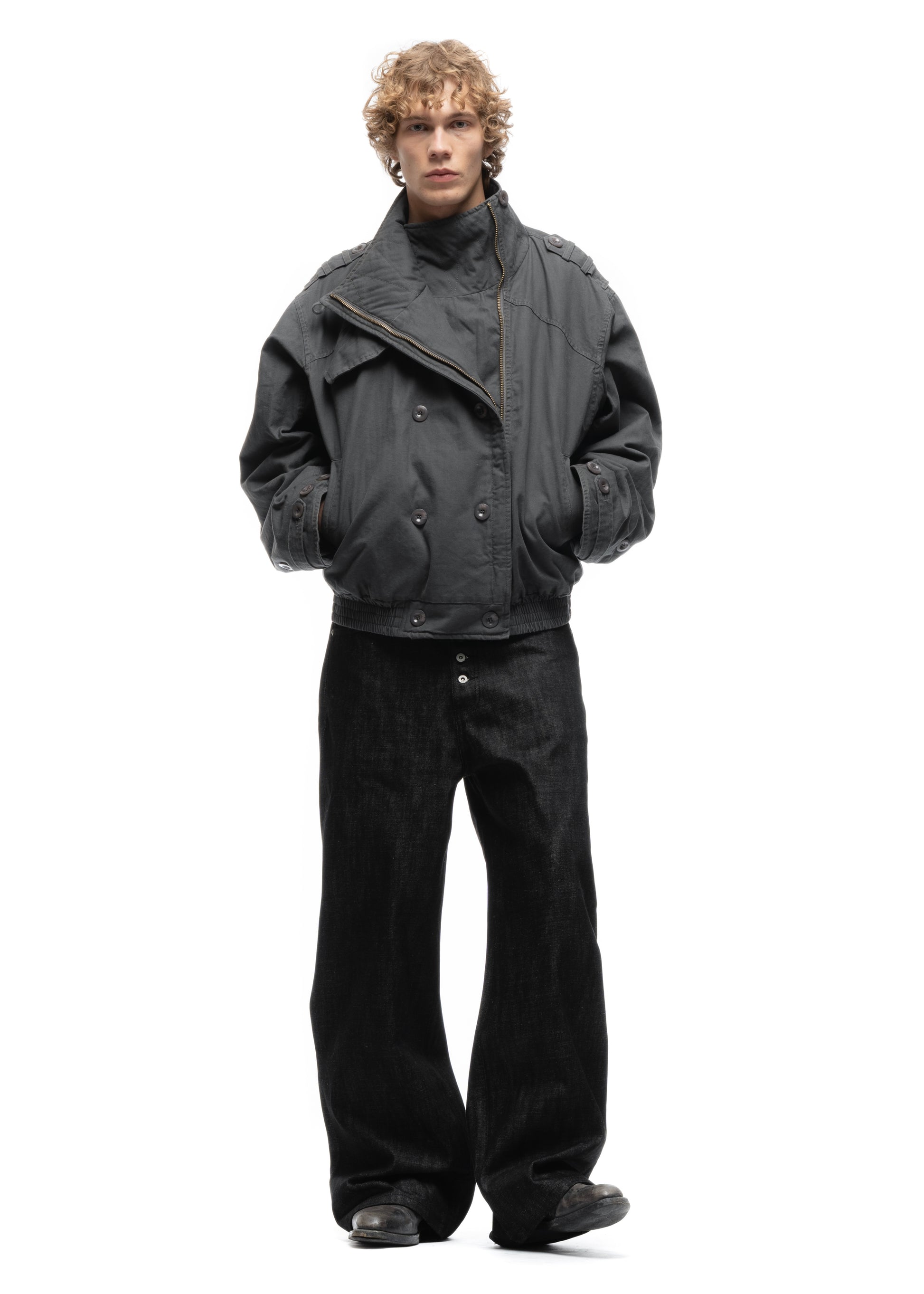 THE JACKET INCLUDES AN ASYMMETRICAL CHEST POCKET AND BANANA-SHAPED SLEEVES THAT CREATE A RELAXED, ROUNDED PROFILE. THE INTERIOR IS BUILT WITH A 100% COTTON ONION LINING, ADDING STRUCTURE AND SOFT PADDING.