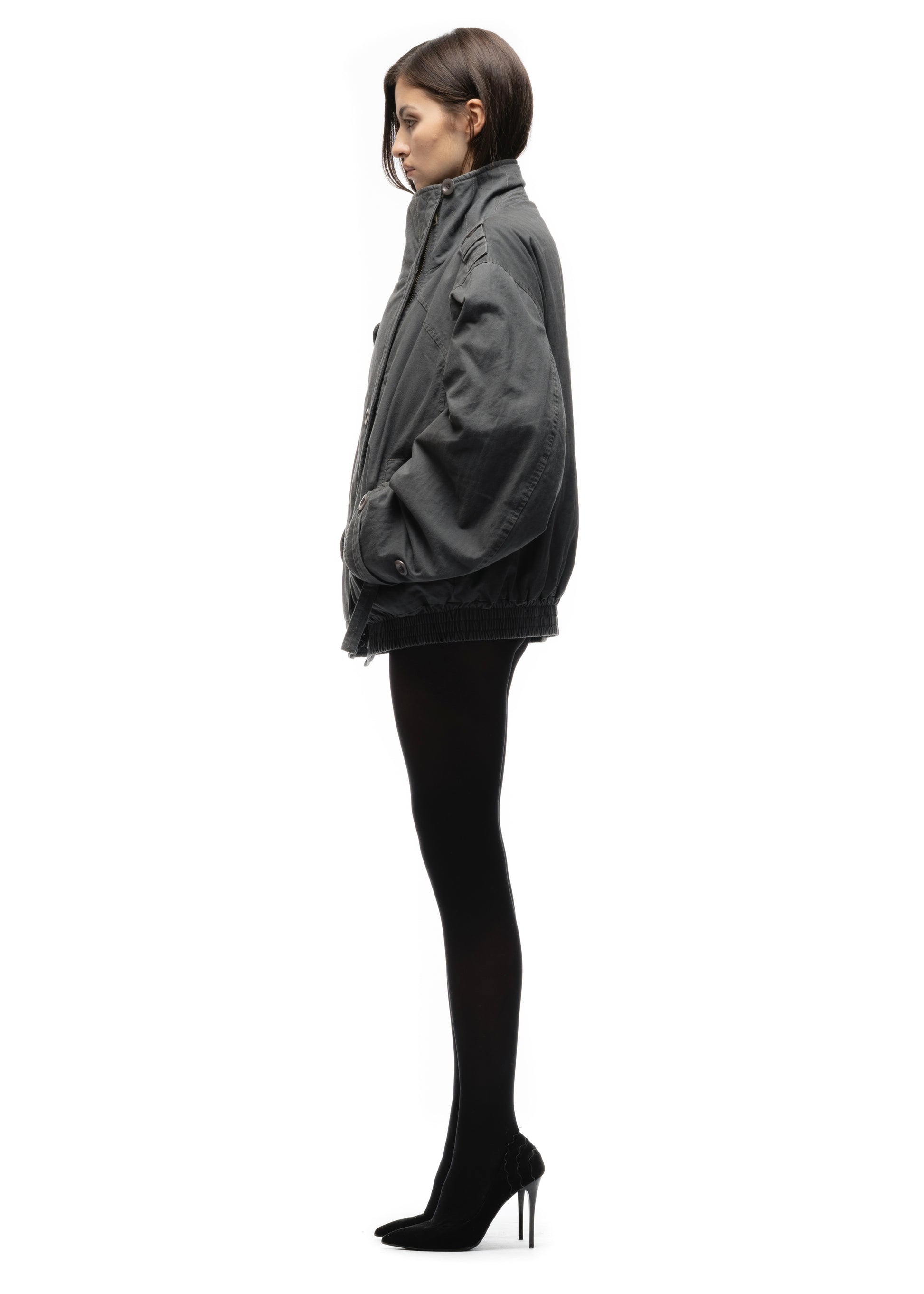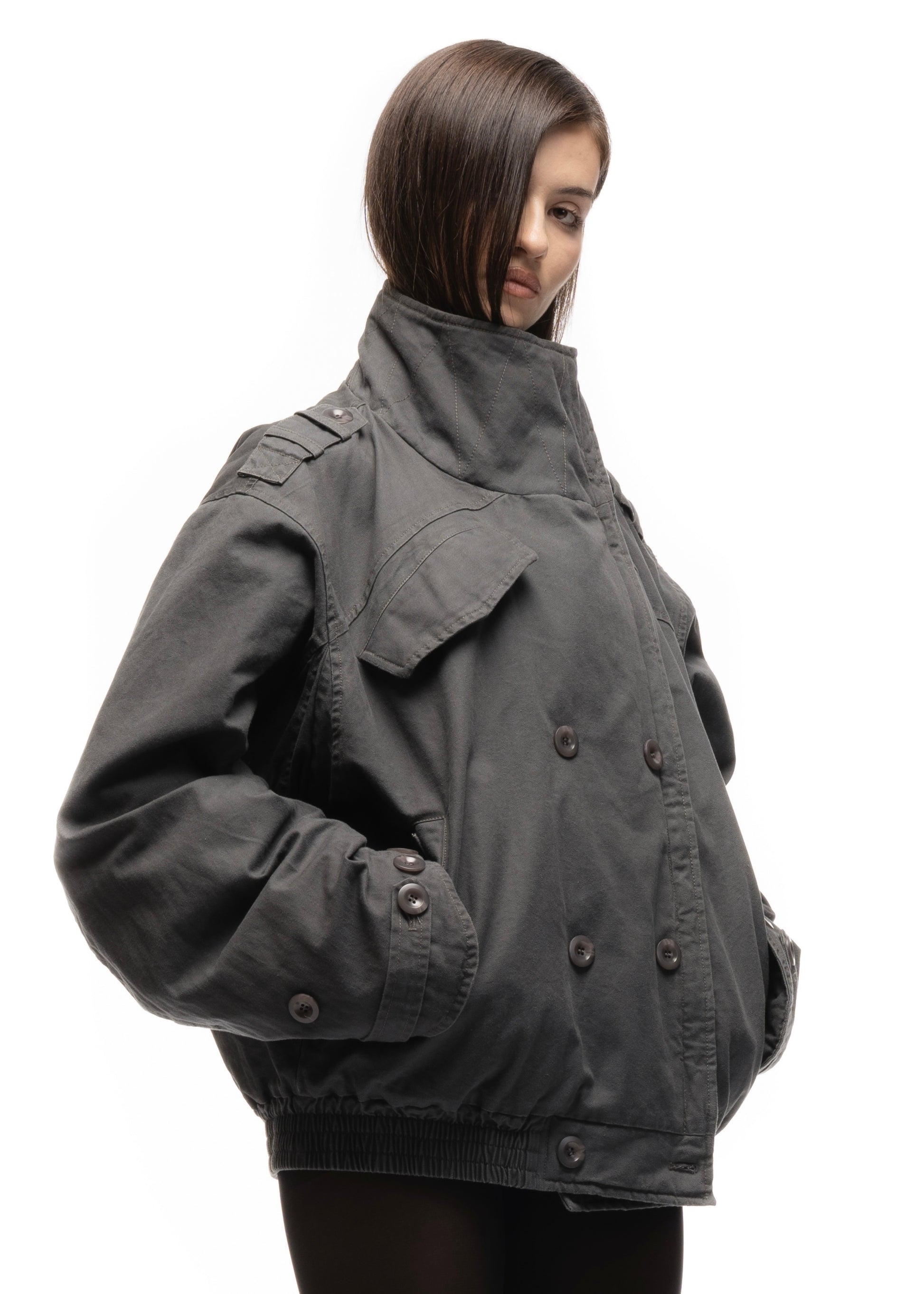 THE JACKET INCLUDES AN ASYMMETRICAL CHEST POCKET AND BANANA-SHAPED SLEEVES THAT CREATE A RELAXED, ROUNDED PROFILE. THE INTERIOR IS BUILT WITH A 100% COTTON ONION LINING, ADDING STRUCTURE AND SOFT PADDING.