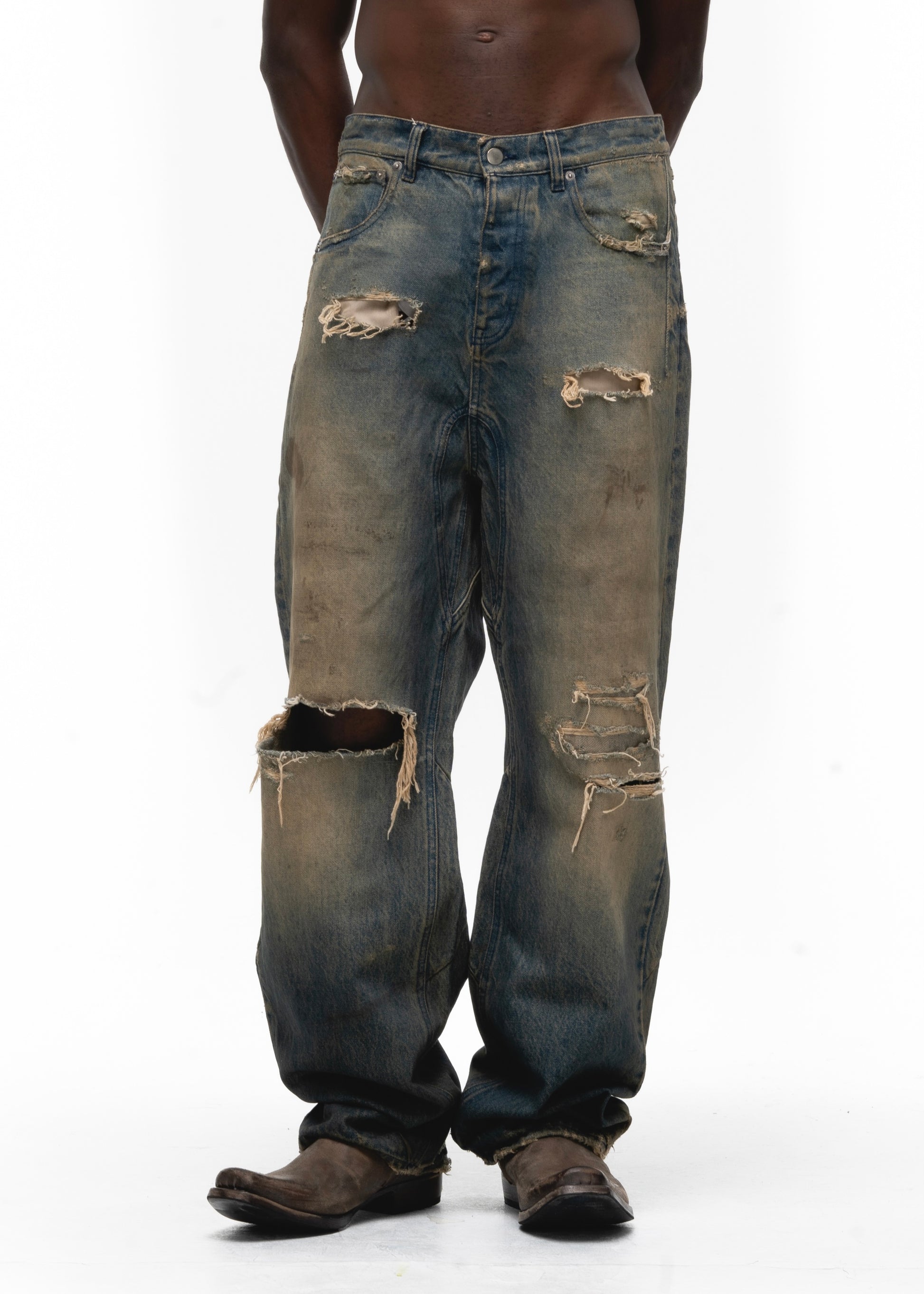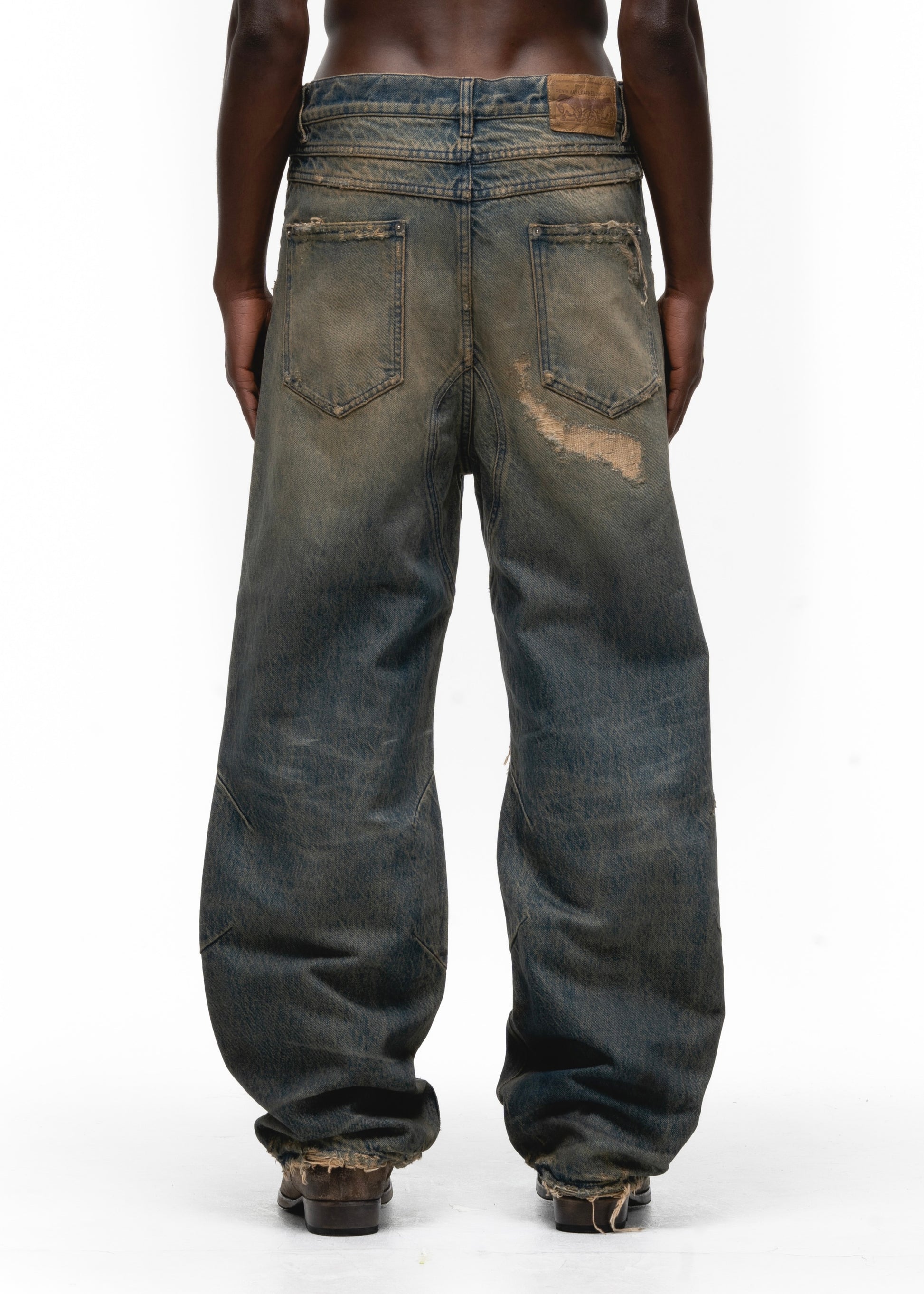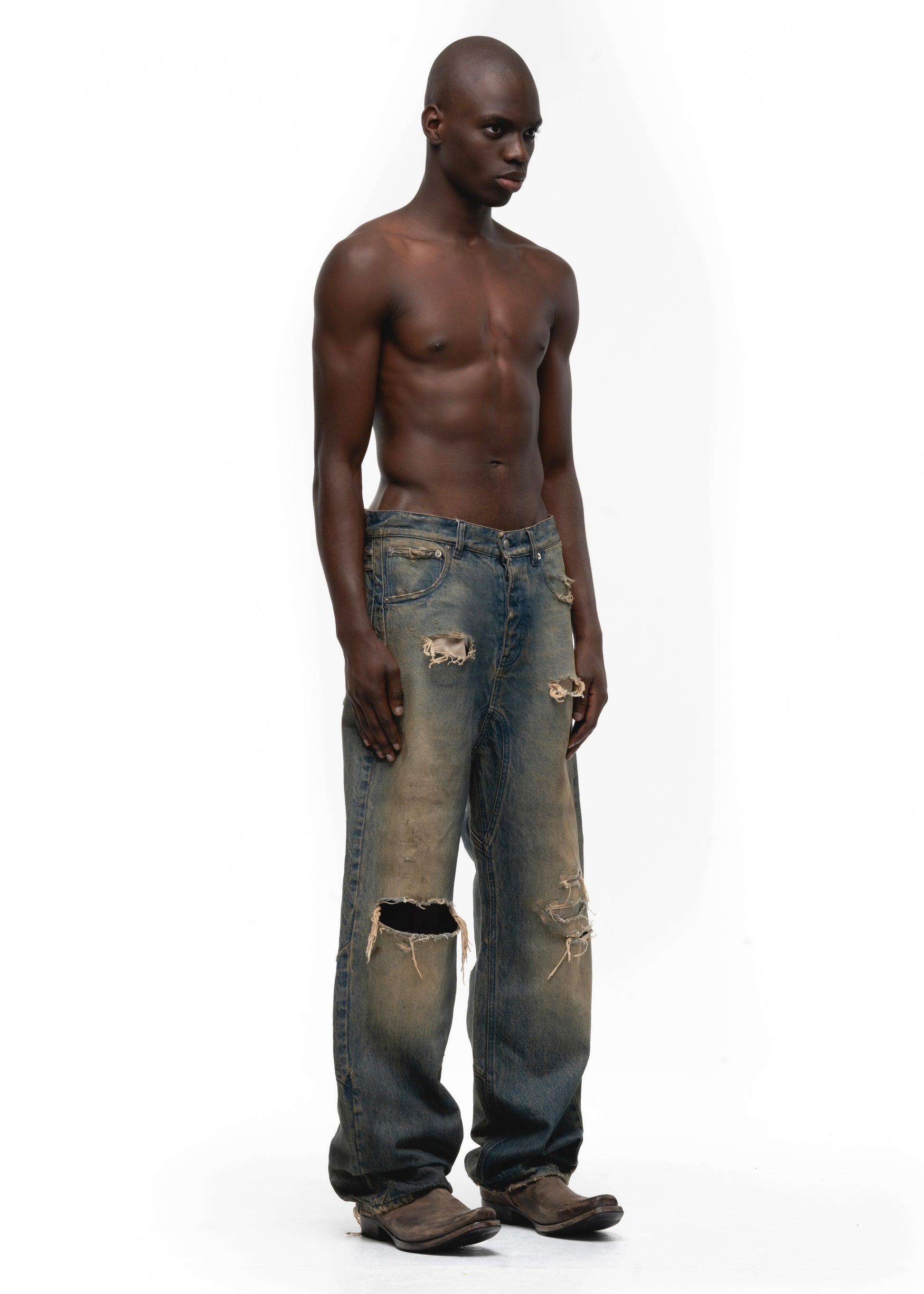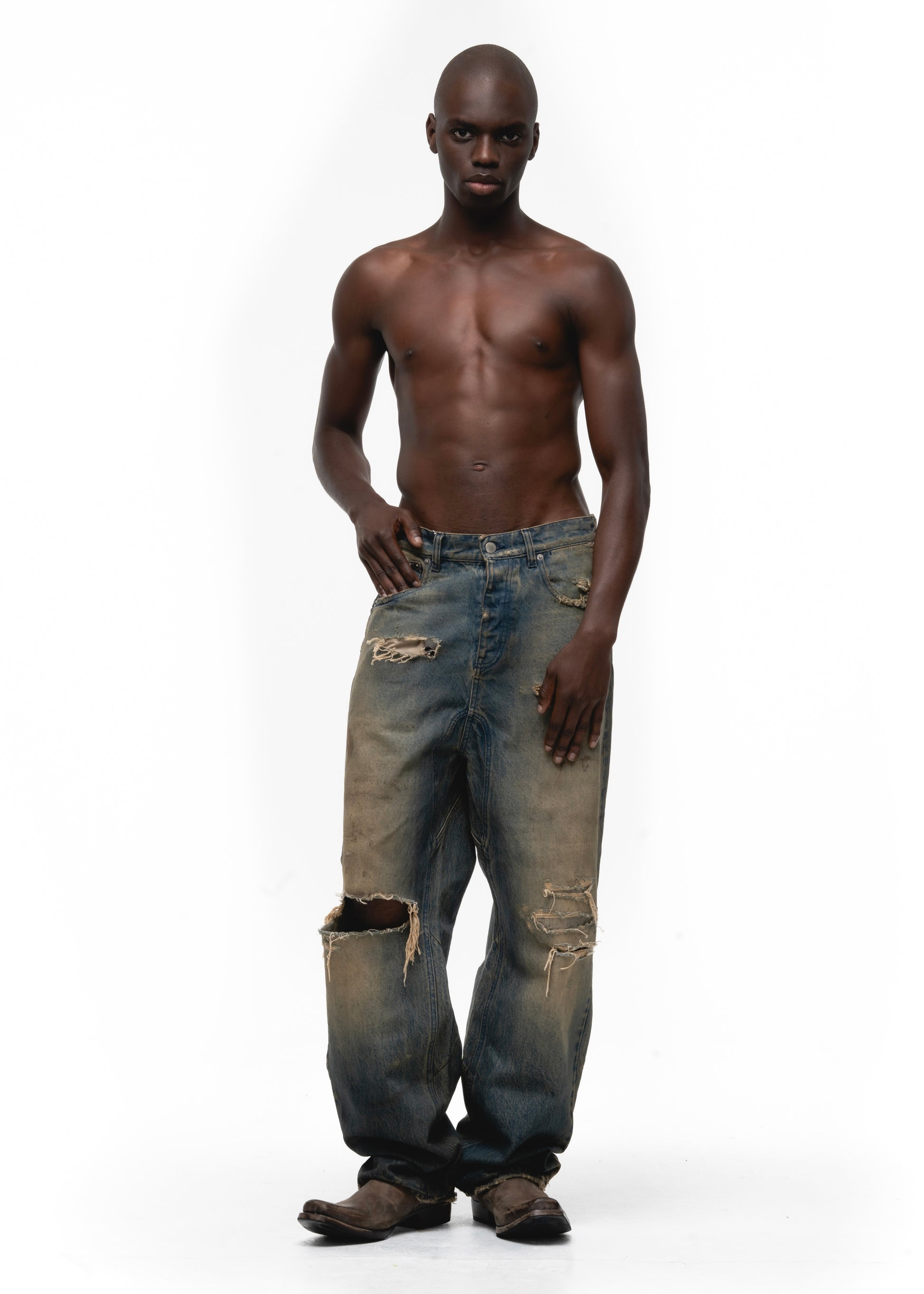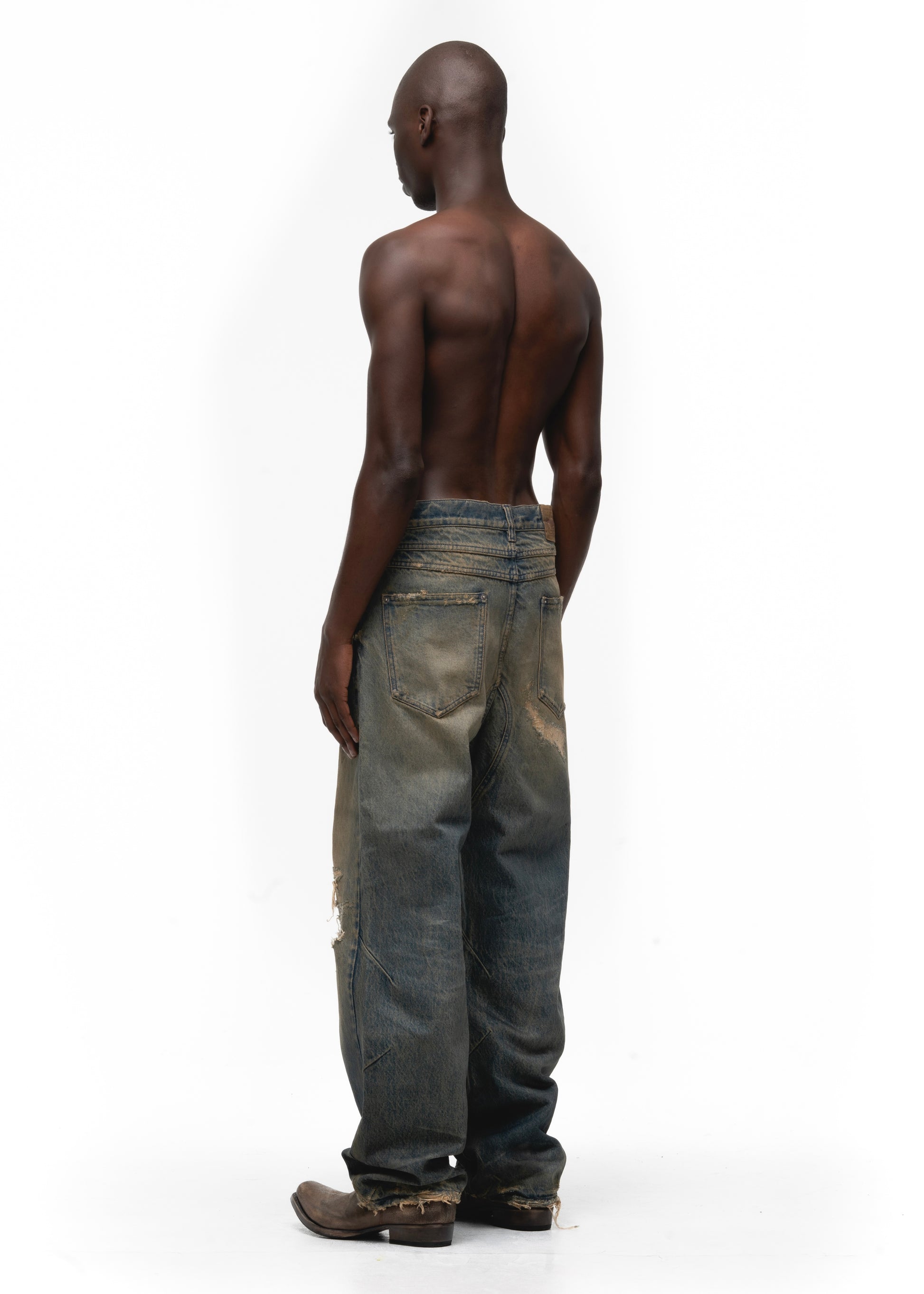 THE VENICE CUT IS AN ITALIAN 5-POCKET DENIM, BLENDING USED SUN FADE AND NATURAL EARTH TREATMENTS TO CREATE A DEEPLY TEXTURED AND WORN-IN LOOK. REPAIRED DISTRESSING AND AUTHENTICALLY AGED HOLES ADD TO ITS CHARACTER, EVOKING A STORY OF CRAFT AND HERITAGE IN EVERY DETAIL. IT FEATURES A CANVAS TAG AND A PRINTED INSIDE POCKET LINING.