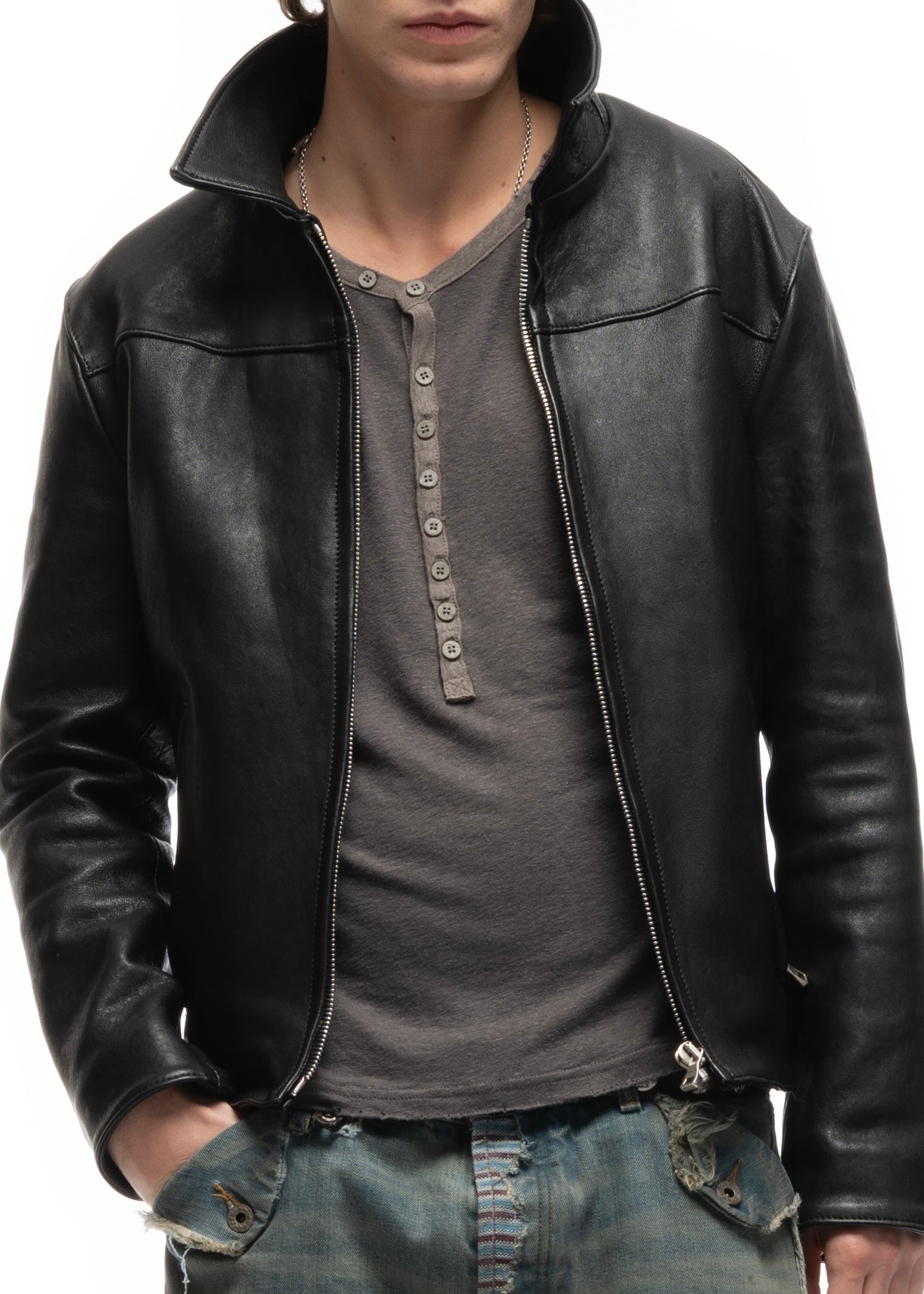 THE MESSAGE BUTTON UP T-SHIRT IN STEEL GREY FEATURES A RELAXED FIT WITH A ROW OF SMALL WOODEN BUTTONS SET ON A NARROW PLACKET. THE BACK INSIDE CARRIES A PRINTED TEXT DETAIL, ADDING A SUBTLE INTERNAL MESSAGE. THE LIGHTLY DISTRESSED SURFACE GIVES THE T-SHIRT A SIMPLE, WORN-IN LOOK.