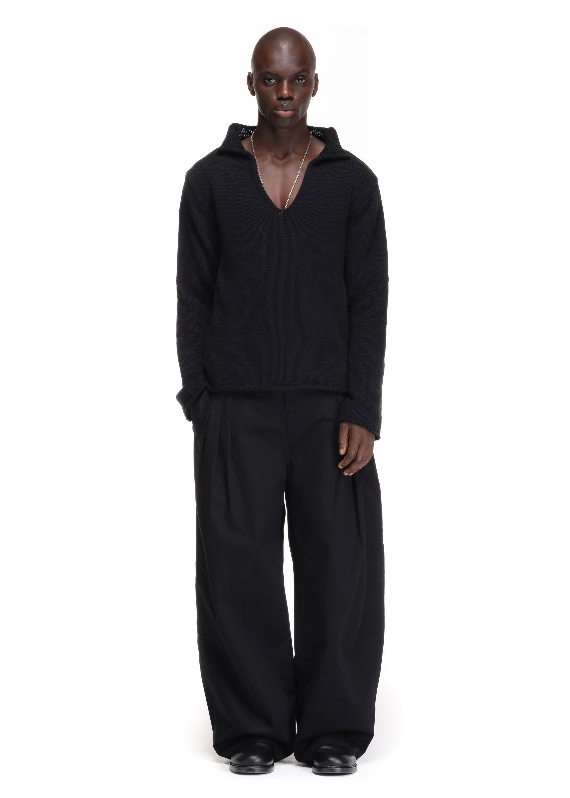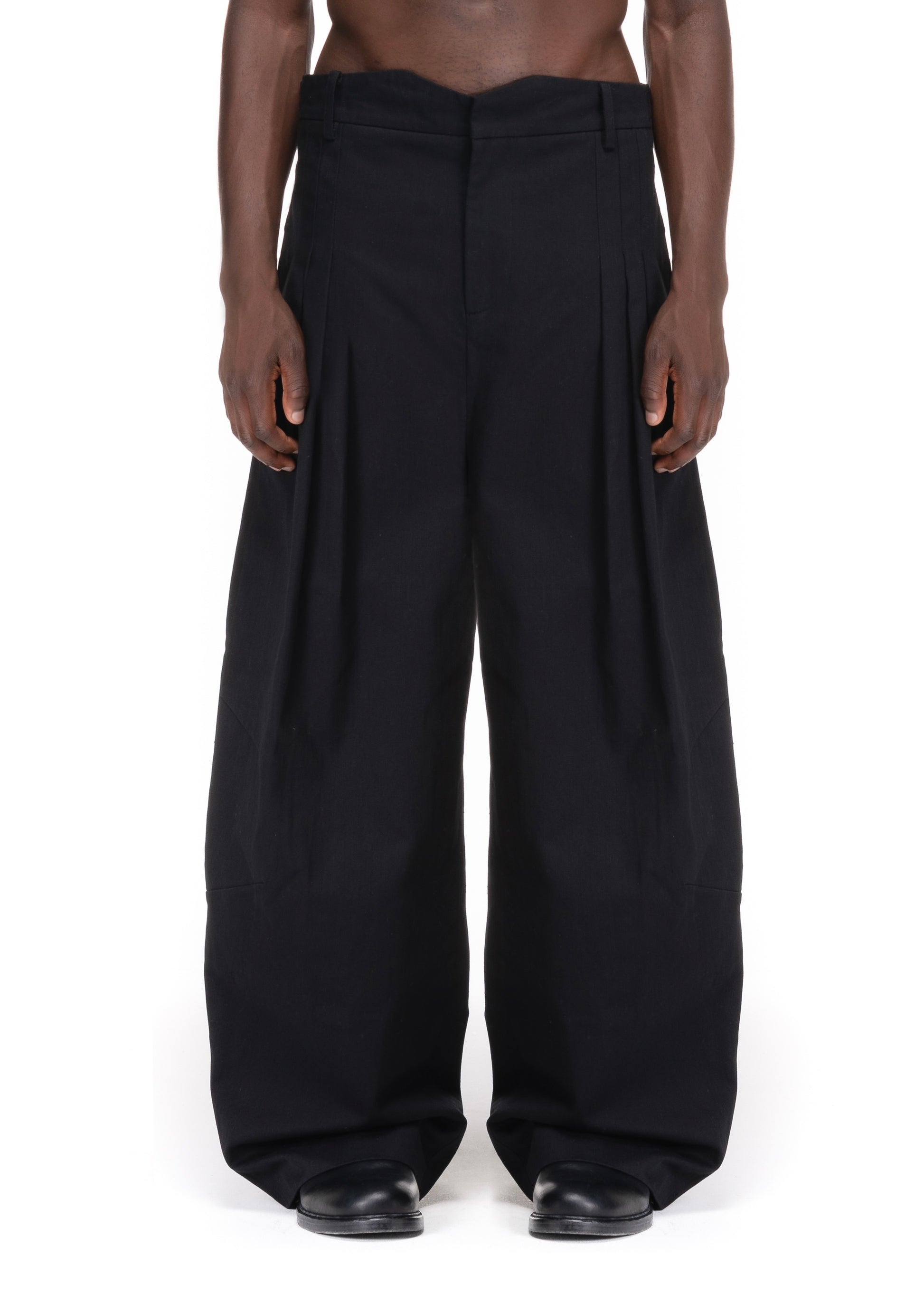 WIDE PLEATED SUIT PANTS IN BLACK. LOOSE FIT WITH DEEP FRONT PLEATS AND WIDE LEG. STRUCTURED FABRIC WITH A RELAXED DRAPE. CLEAN LOOK THAT WORKS WITH LAYERS OR SIMPLE BASICS. MODERN UTILITY FEEL FOR EVERYDAY WEAR.