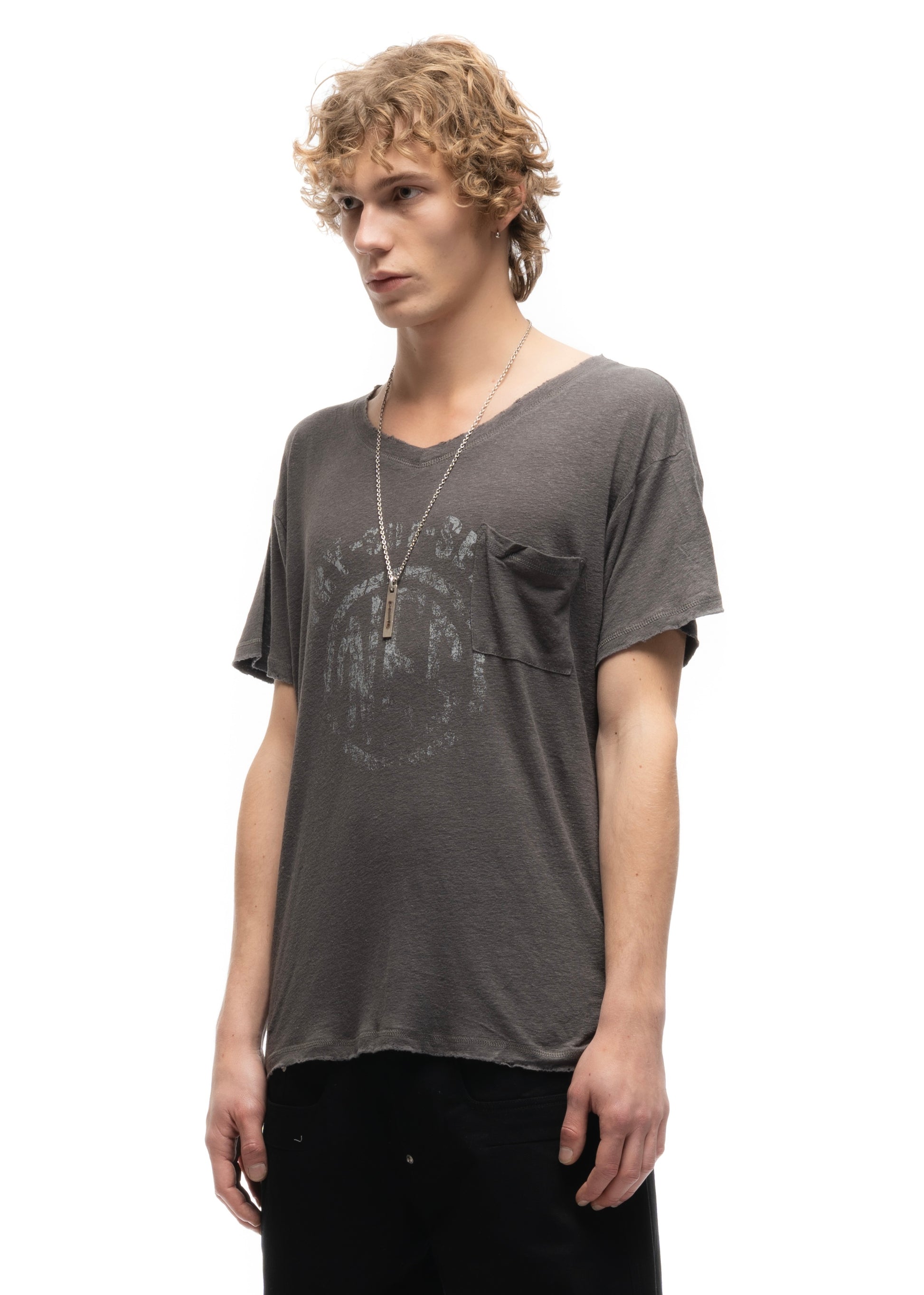 THE NFS IVRY T-SHIRT IN VINTAGE GREY FEATURES A SOFT, WASHED FABRIC WITH A FADED FRONT GRAPHIC AND SUBTLE DISTRESSED EDGES. THE RELAXED, DRAPED SILHOUETTE CREATES A NATURAL, WORN-IN LOOK WITHOUT FEELING OVERDONE.