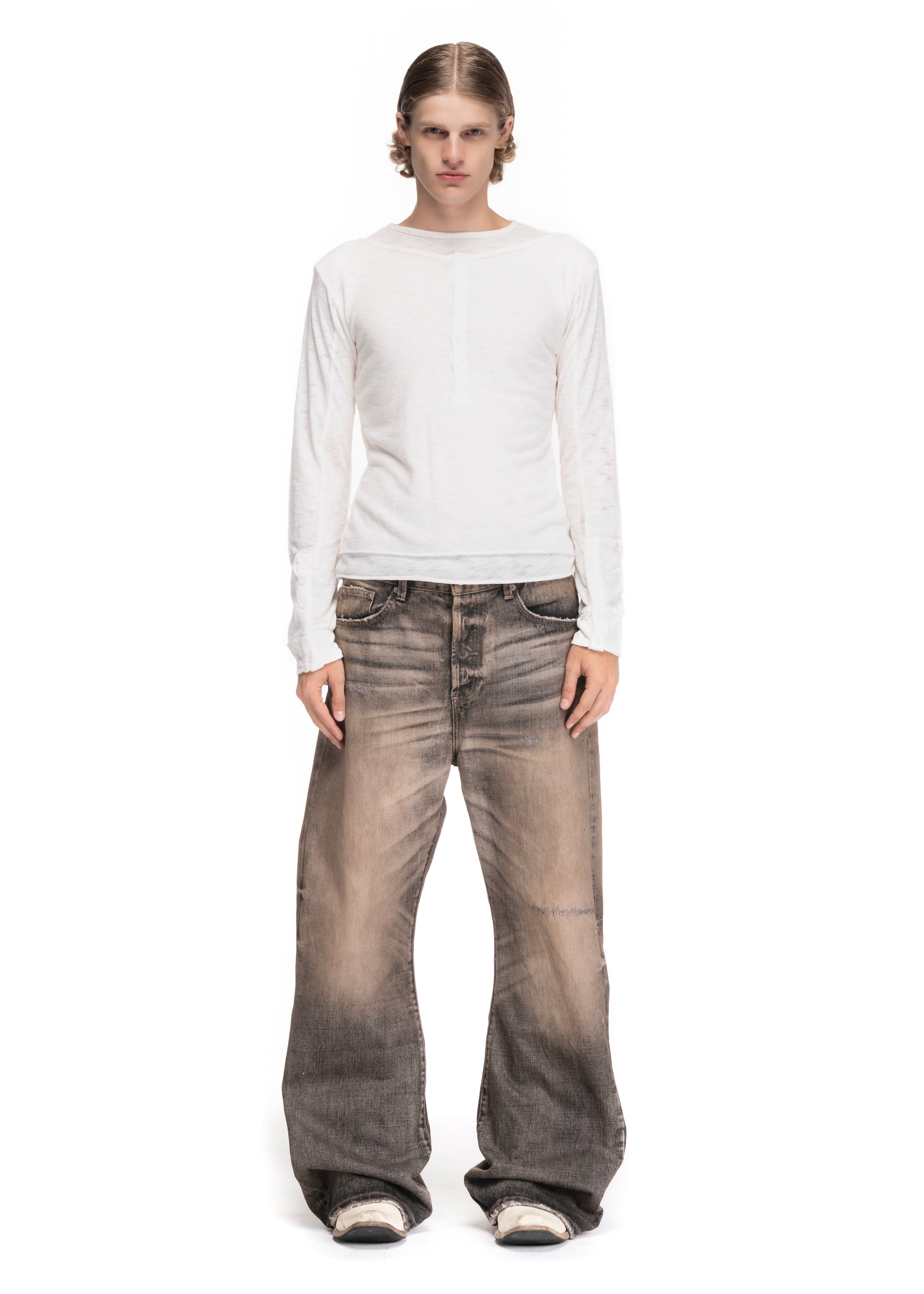 THE SOLAR FADE SELVEDGE DENIM BOOTCUT IS MADE FROM JAPANESE RAW DENIM WITH A STRONG USED FADE ALONG THE FRONT AND BACK. THE COLOR BREAKS AND WORN-IN EFFECT CREATE A NATURAL, SUN-EATEN LOOK. THE BOOTCUT SHAPE OFFERS A SLIGHTLY WIDER OPENING TOWARDS THE HEM, GIVING THE PIECE A RELAXED, STRAIGHTFORWARD FEEL. A CLEAN USED DENIM OPTION FOR EVERYDAY WEAR.